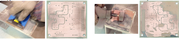 figure 3: Ръчно шлифоване на PCB за премахване на маска за запояване .---